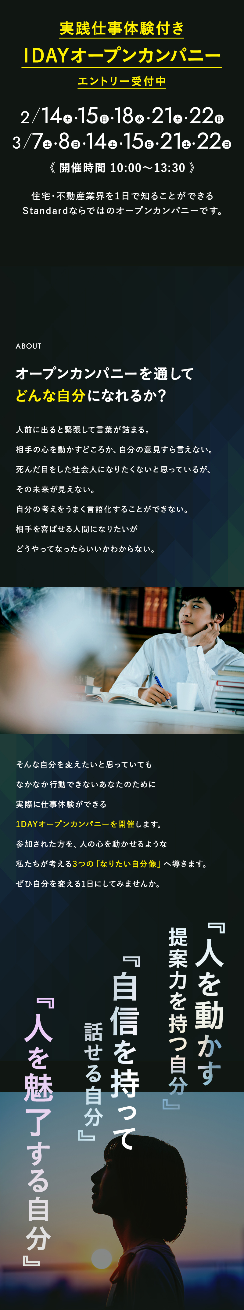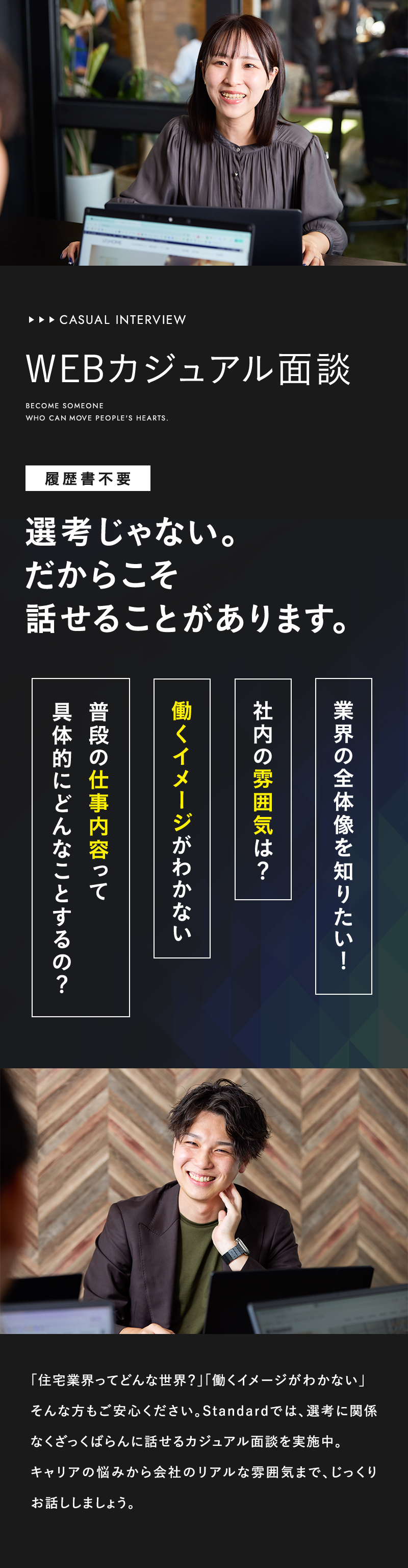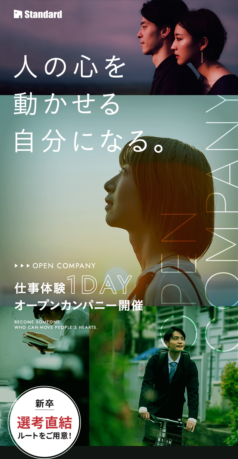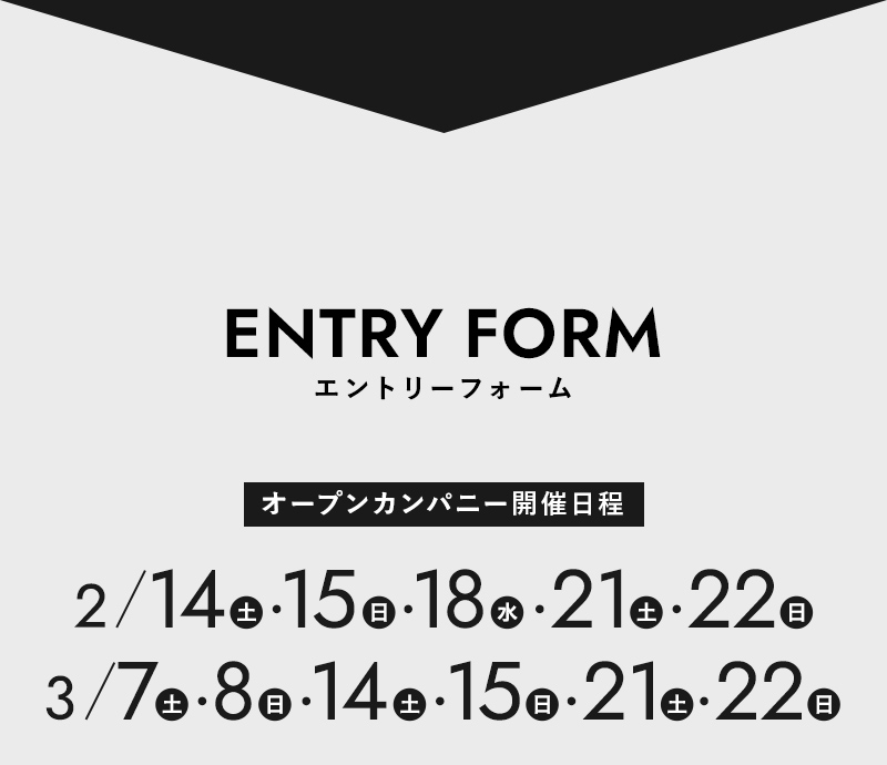 ご用件 オープンカンパニー参加カジュアル面談希望 お好きな日時でご参加いただけます。 お名前 ふりがな 生年月日 -199019911992199319941995199619971998199920002001200220032004200520062007200820092010 年 -123456789101112 月 -12345678910111213141516171819202122232425262728293031 日 年齢 歳 メールアドレス 電話番号 住所 郵便番号 都道府県 都道府県を選択北海道青森県岩手県宮城県秋田県山形県福島県茨城県栃木県群馬県埼玉県千葉県東京都神奈川県新潟県富山県石川県福井県山梨県長野県岐阜県静岡県愛知県三重県滋賀県京都府大阪府兵庫県奈良県和歌山県鳥取県島根県岡山県広島県山口県徳島県香川県愛媛県高知県福岡県佐賀県長崎県熊本県大分県宮崎県鹿児島県沖縄県 市区町村 番地・建物名 学校名 学部 下記を確認してください 弊社のプライバシーポリシーを確認する 内容を確認し、同意しました。